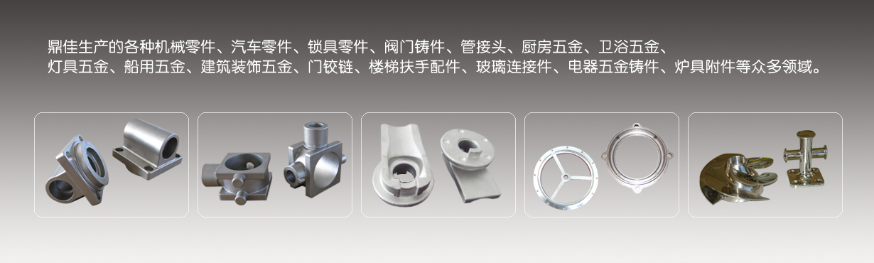 各種機械零件、縫制零件、紡織配件、汽車零件、鎖具零件、閥門零件、管接頭、五金工具、廚房五金、衛(wèi)浴五金、燈具五金、船用五金、建筑裝飾五金、門鉸鏈、樓梯扶手配件、電器五金鑄件、爐具附件等眾多領域。